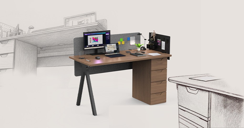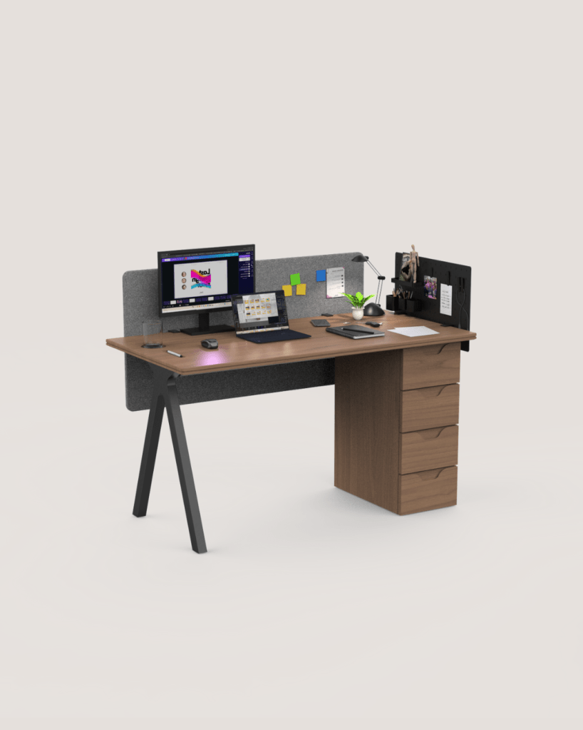 Défi : Adapter un mobilier ergonomique et esthétique à un usage partagé ou rotatif, sans sacrifier la personnalisation ni la tranquillité. Résoudre les défis sonores et visuels de l’open space avec des solutions intégrées (panneaux amovibles, câblage discret, tiroirs), tout en gardant une identité design cohérente dans un espace collectif.